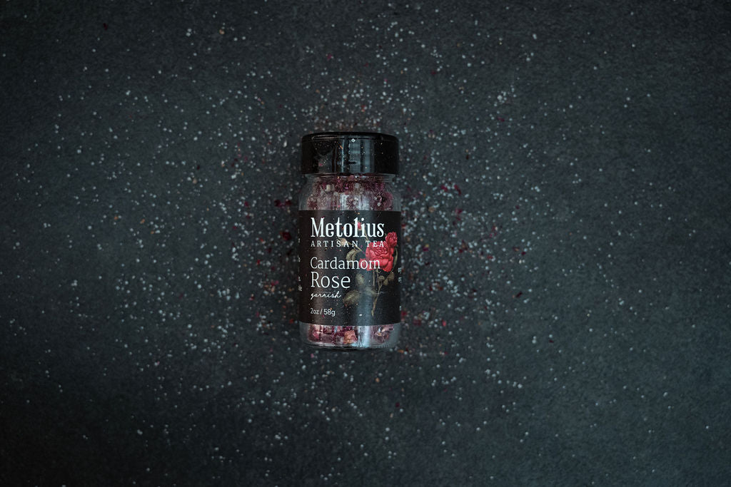 Crushed roses, ground cardamom, and sparkling sugar blended into a delightful garnish to add texture, flavor, and beauty to lattes. Also lovely to sprinkle over ice cream or french toast.